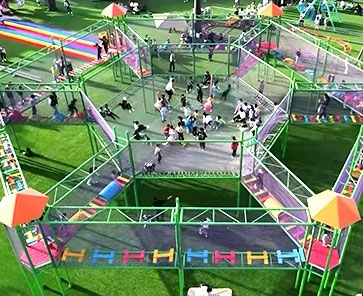 飛天城堡是無動力親子樂園一步步進化升級衍生出來的一款大型游樂項目。成為樂園的標志性建筑。外形酷似城堡、現(xiàn)在的無動力樂園越來越多,如何從眾多的樂園中顯現(xiàn)出來具有高顏值與眾不同的產(chǎn)品,肯定會更勝一籌。這款城堡共有6層,每層活動空間大小不同,通過攀爬、繩洞、闖關(guān)等獨特方式進入下一層,很適合孩子來挑戰(zhàn)。設(shè)備還配有五彩斑斕的燈光,到了夜晚格外的絢麗多彩。不管是大人還是小孩看到視頻都想去打卡。