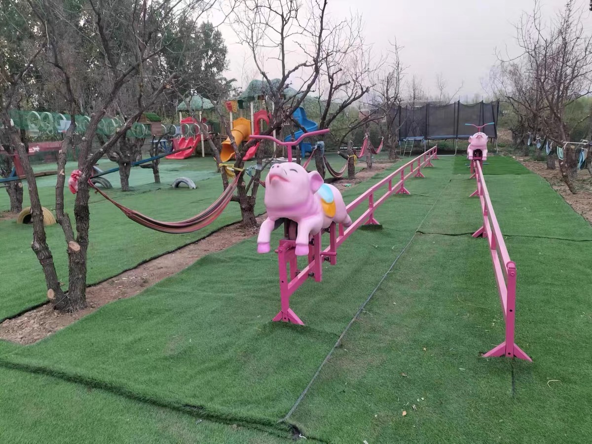 小豬賽跑,軌道長(zhǎng)15米,一般兩條以上組成一組。游客通過(guò)手動(dòng)前后搖動(dòng)手把推動(dòng)小豬前進(jìn),趣味性、互動(dòng)性非常強(qiáng)。是農(nóng)莊、景區(qū)等場(chǎng)地引流必備產(chǎn)品。