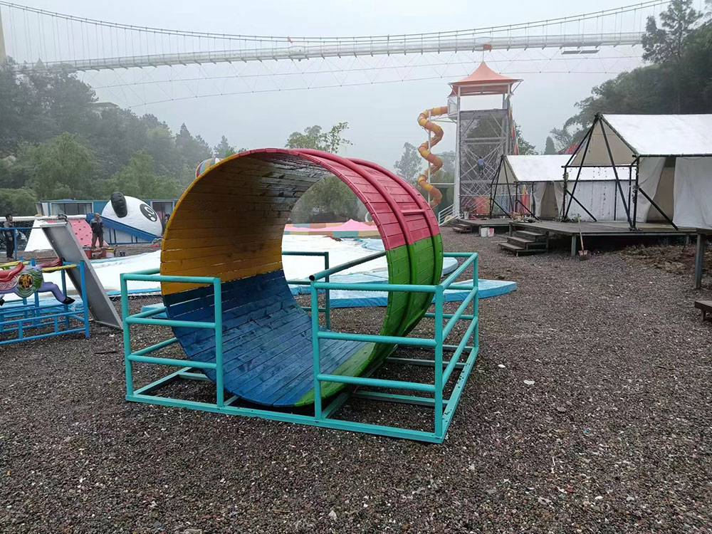 長2.4米寬2.4米高2米可定制尺寸鋼材:底座80*80、扶手立柱40*60和40圓管、滾筒使用40*40、30*50、側(cè)面防護32圓管、滾筒板使用25毫米防腐木使用沉頭螺絲固定  配置:滾動輪4套使用尼龍精加工靜音輪,整體可拆裝、安裝簡單  新鄉(xiāng)市金諾有限公司無動力游樂設(shè)備產(chǎn)品主要包括觀景臺、叢林穿梭、多人秋千、親子過山車、小豬賽跑、原地滾筒、水母蹦床、旋轉(zhuǎn)自行車、管軌滑道、玻璃水滑、玻璃吊橋、步步驚心、滑梯組合、彩虹滑道、天空之鏡、飛天城堡、高空自行車直上云霄、天空步道、勇攀高峰、時空穿梭、章魚滑梯、爬坡組合、攀巖組合、魔毯等。是一家供應(yīng)商應(yīng)該能夠提供各種各樣的設(shè)備,滿足不同場所的需求。無論是小型主題公園,還是大型游樂場景區(qū),都可以根據(jù)不同的空間和客戶需求來提供合適的產(chǎn)品。